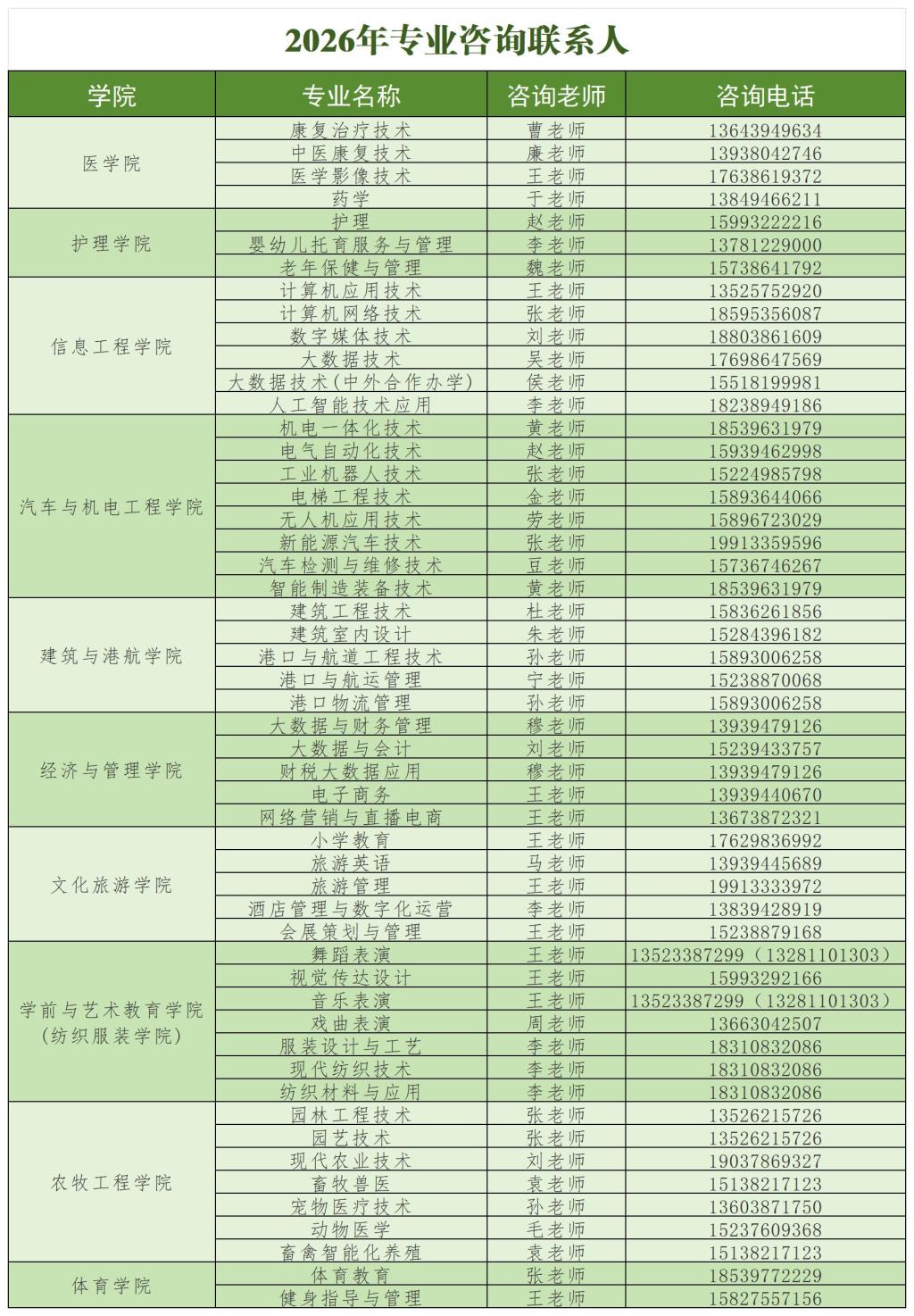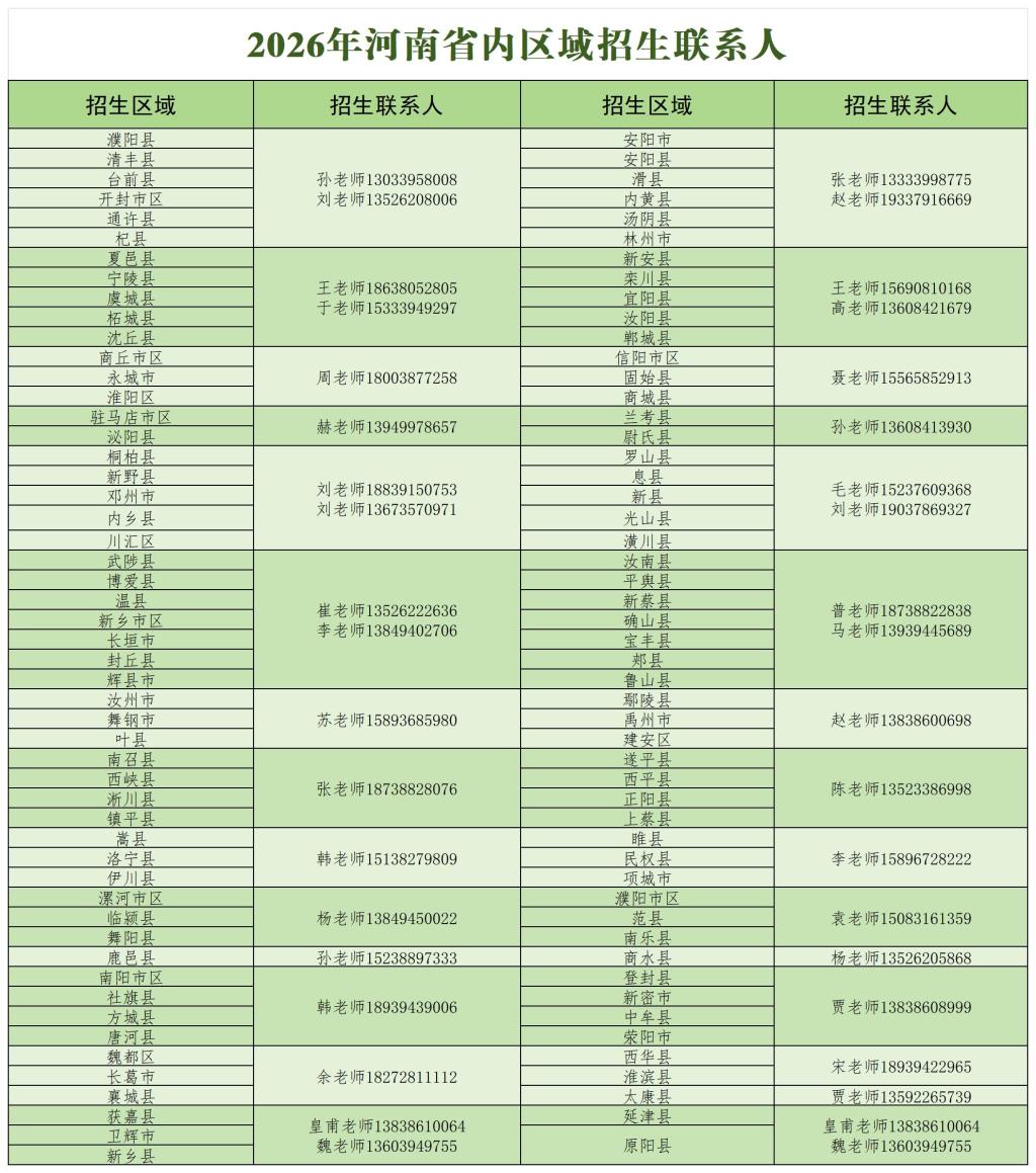 周口职业技术学院2026年省内区域招生及专业咨询联系人