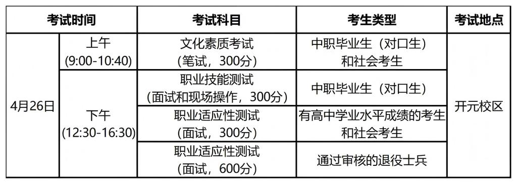 本次考试由文化素质考试、职业技能测试 / 职业适应性测试两部分组成,具体安排如下: