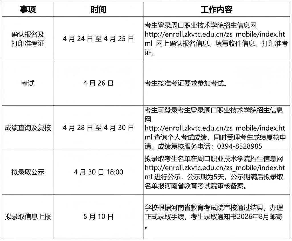 周口职业技术学院 2026 年高职单独招生考试将于 4 月 26 日举行,为保证考试顺利进行,切实保障广大考生合法权益,现将考试相关事宜公告如下: